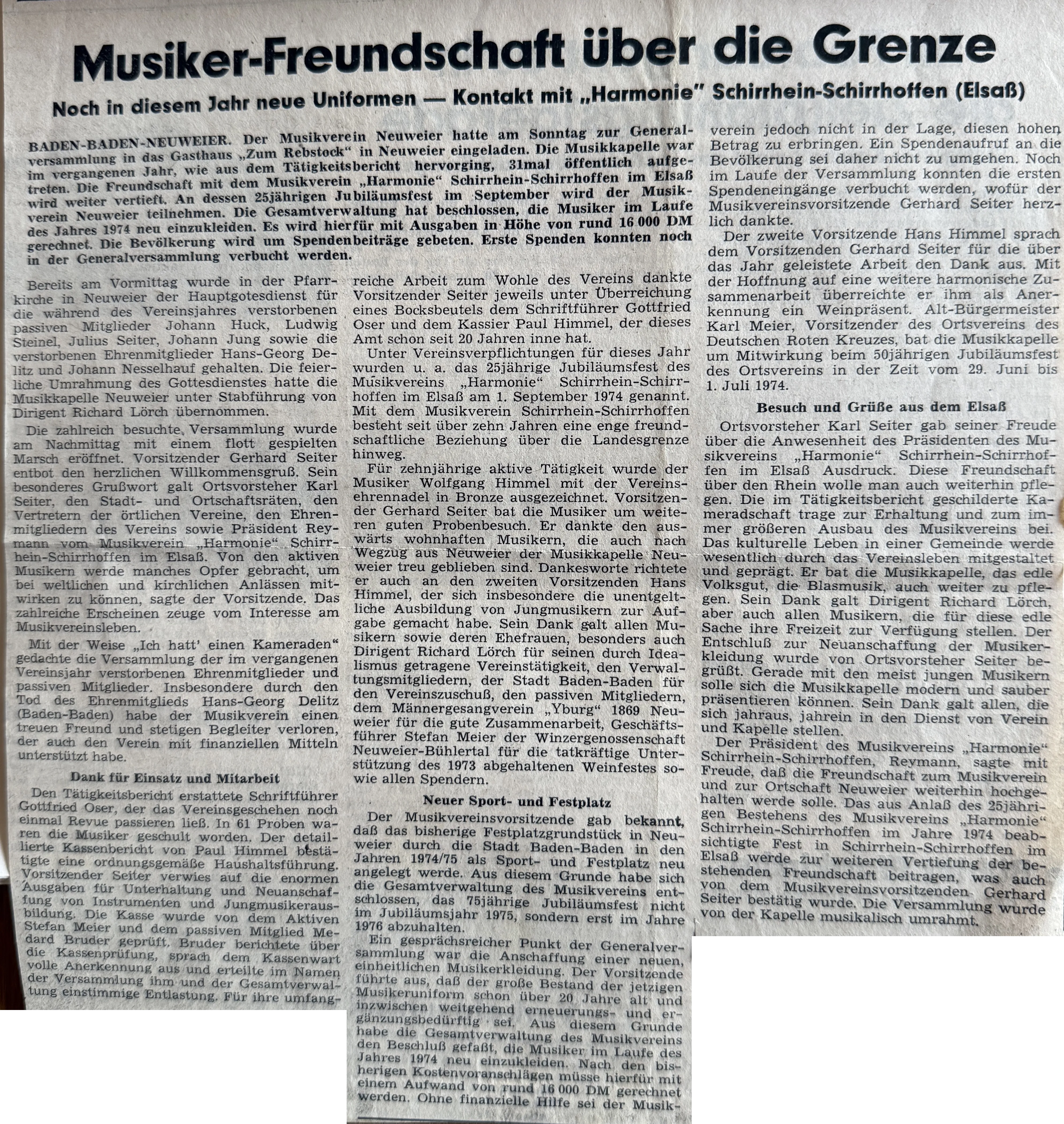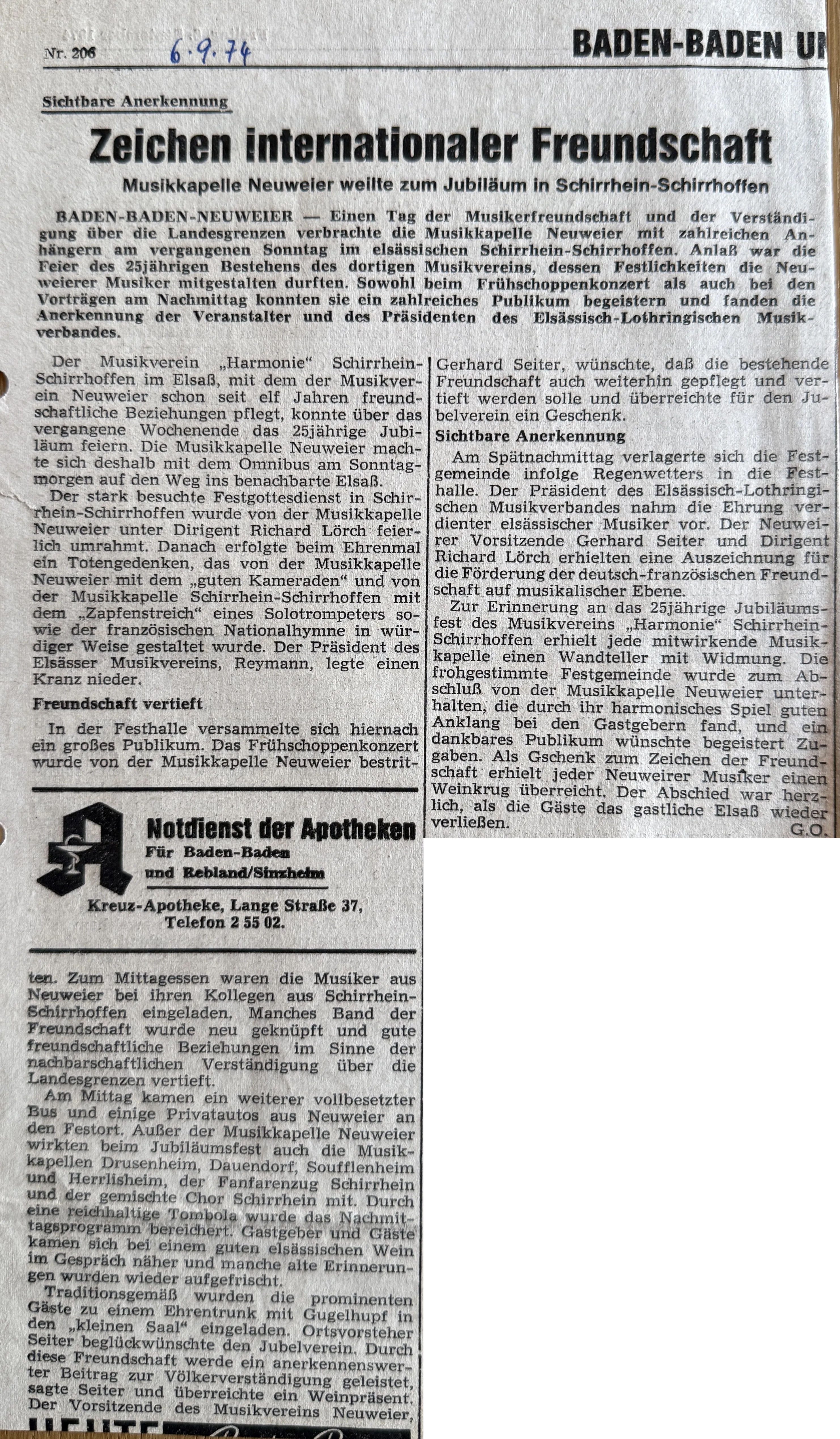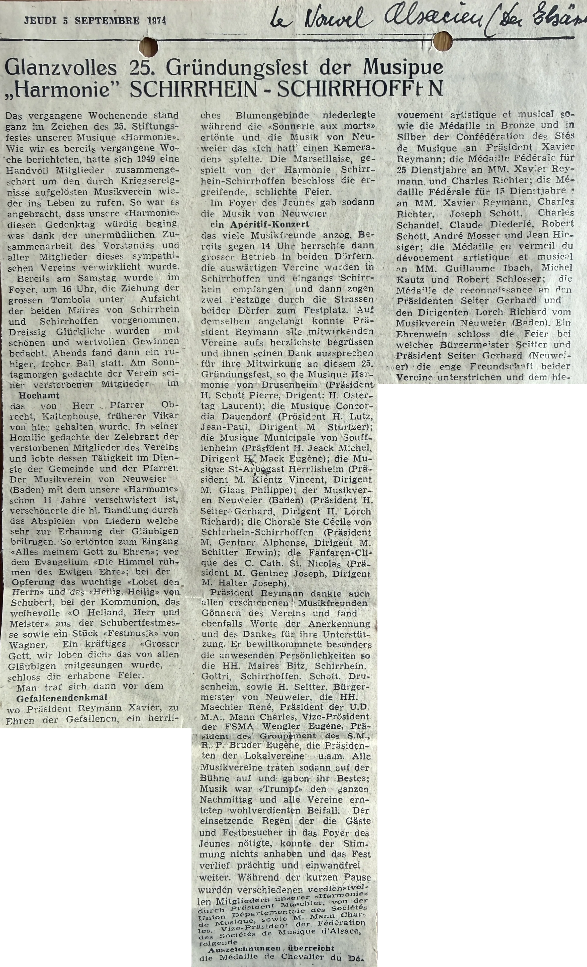 1974.09.05 Presse Elsass - Glanzvolles 25. Gründungsfest der Musique "Harmonie" Schirrhein-Schirrhoffen