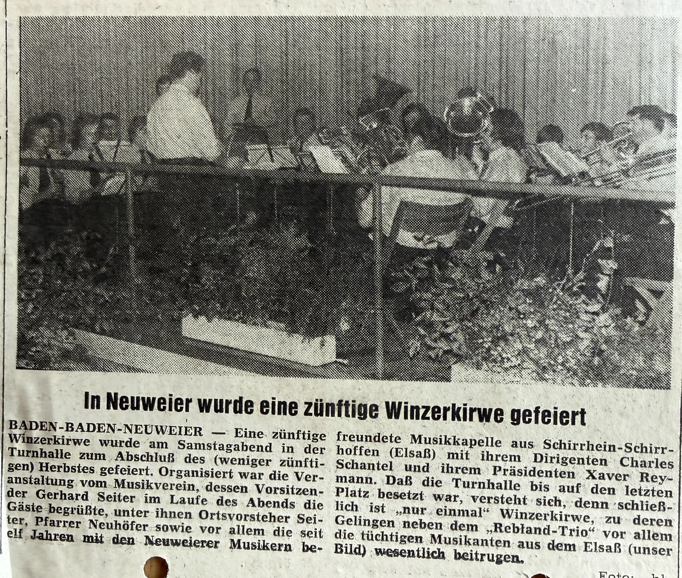 Der Musikverein Neuweier hatte an diesem Sonntagnachmittag zu Generalversammlung in das Gasthaus Rebstock eingeladen. - 1973.09 BT - Vorankündigung Weinfest