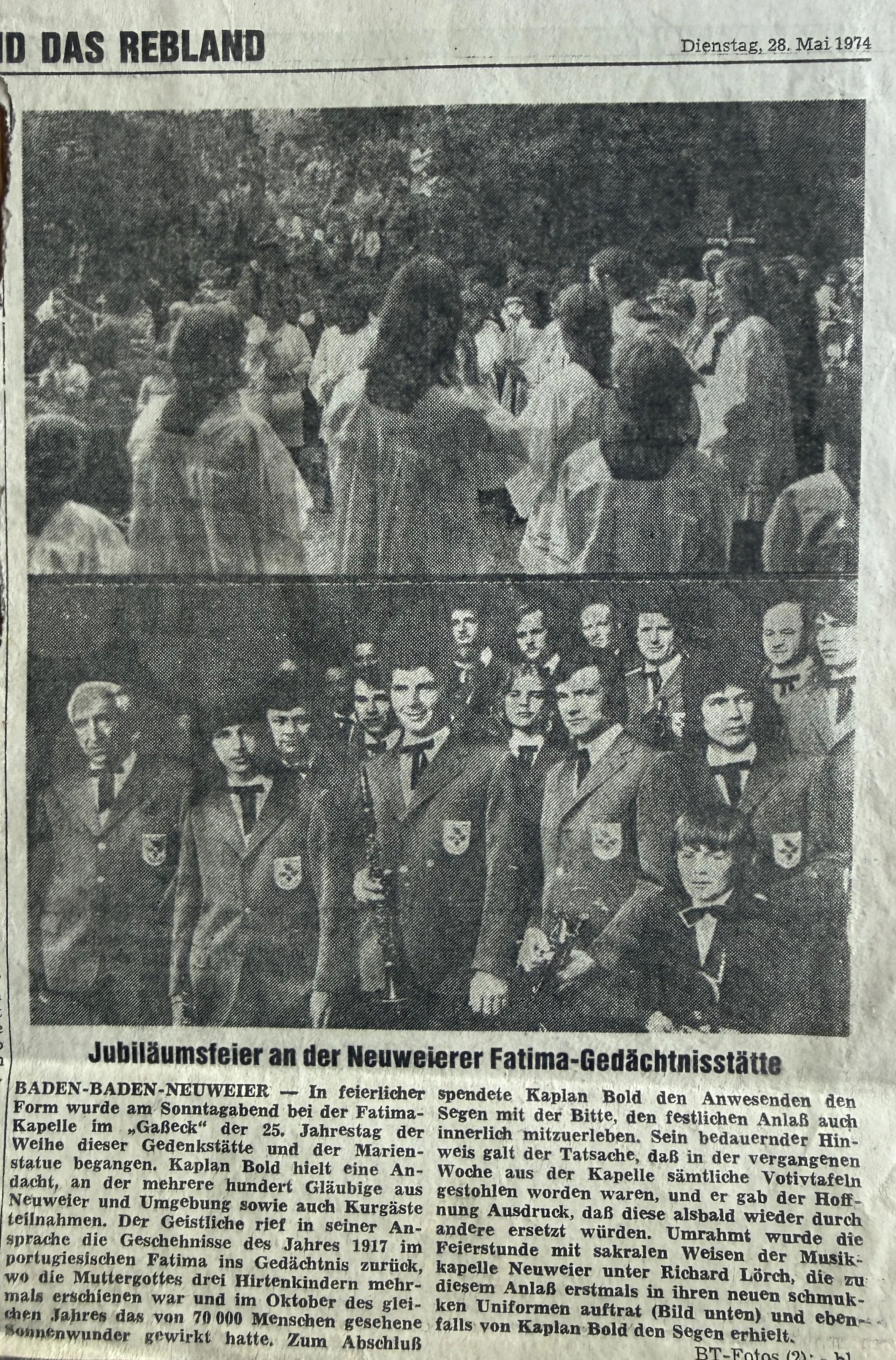 Die Musikkapelle Neuweier unter der Leitung von Richard Lörch bot den vielen Zuhörern ein reichhaltiges musikalisches Programm mit flotten Märschen und gekonnten modernen Darbietungen. - 1974.05.28 BT - Jubiläumsfeier an der Neuweierer Fatima-Gedächtnisstätte