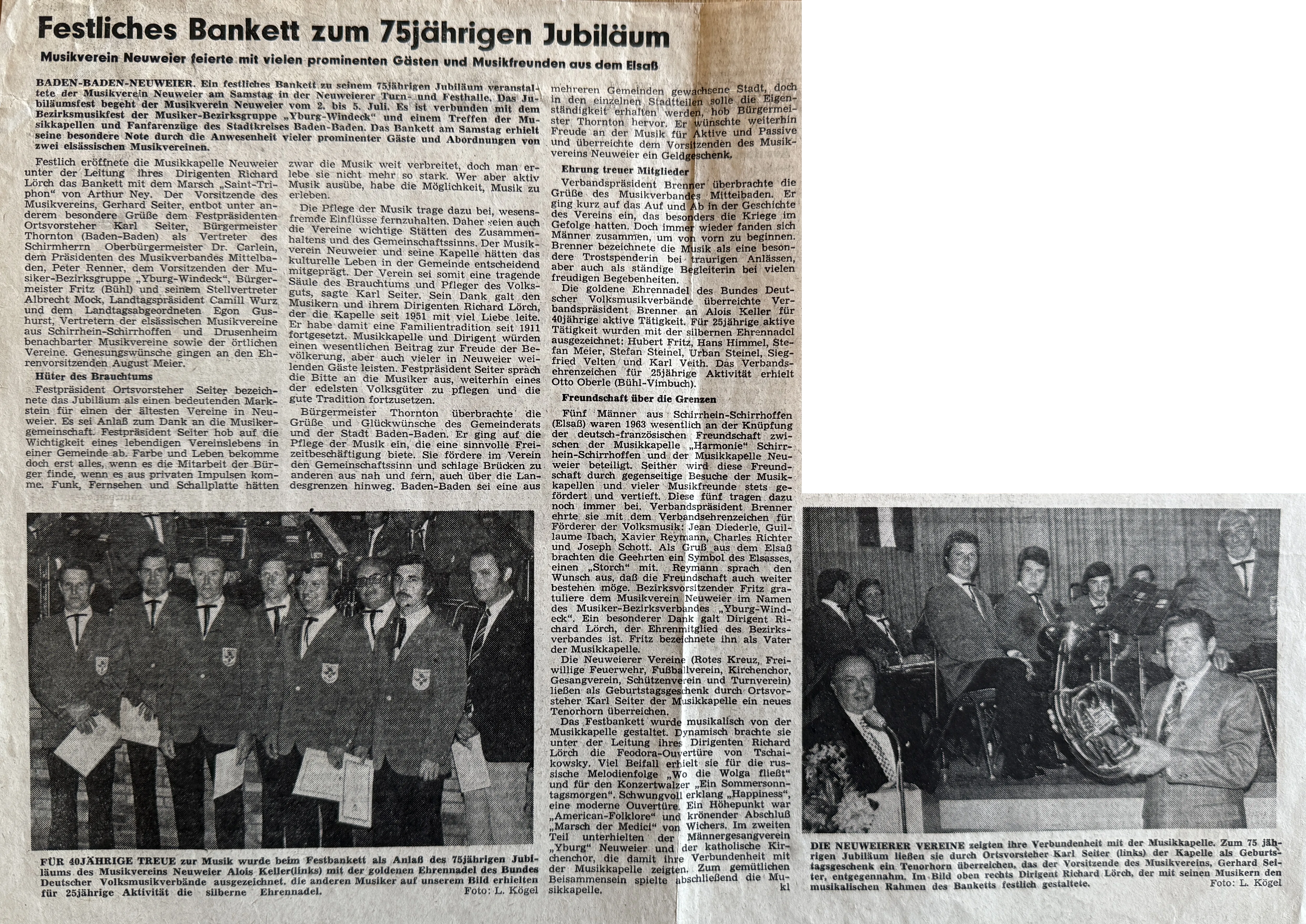 Musikkapelle Neuweier feierte 75jähriges Jubiläum - Festliches Bankett in der Turnhalle - Zahlreiche Musiker geehrt.
