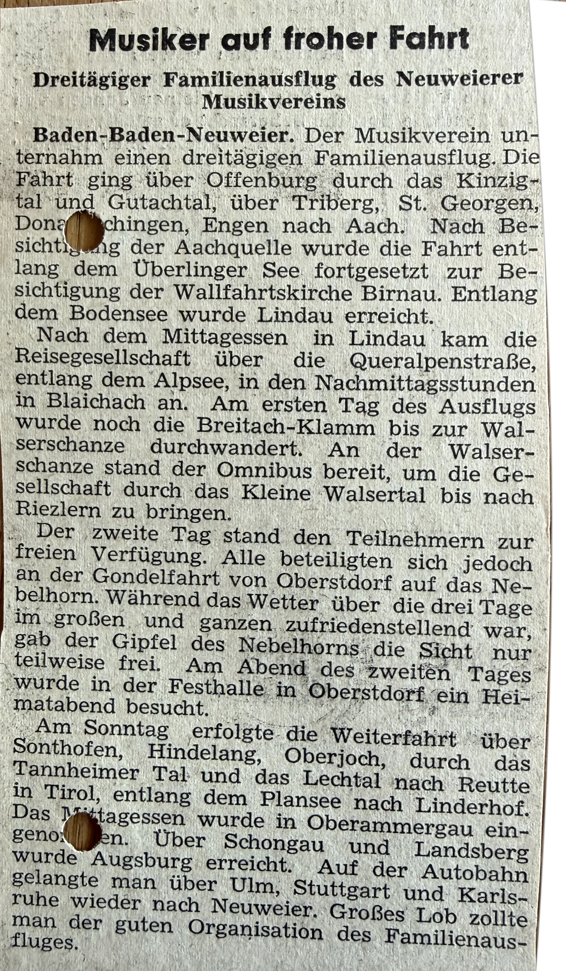 Dreitägiger Familienausflug des Neuweierer Musikvereins