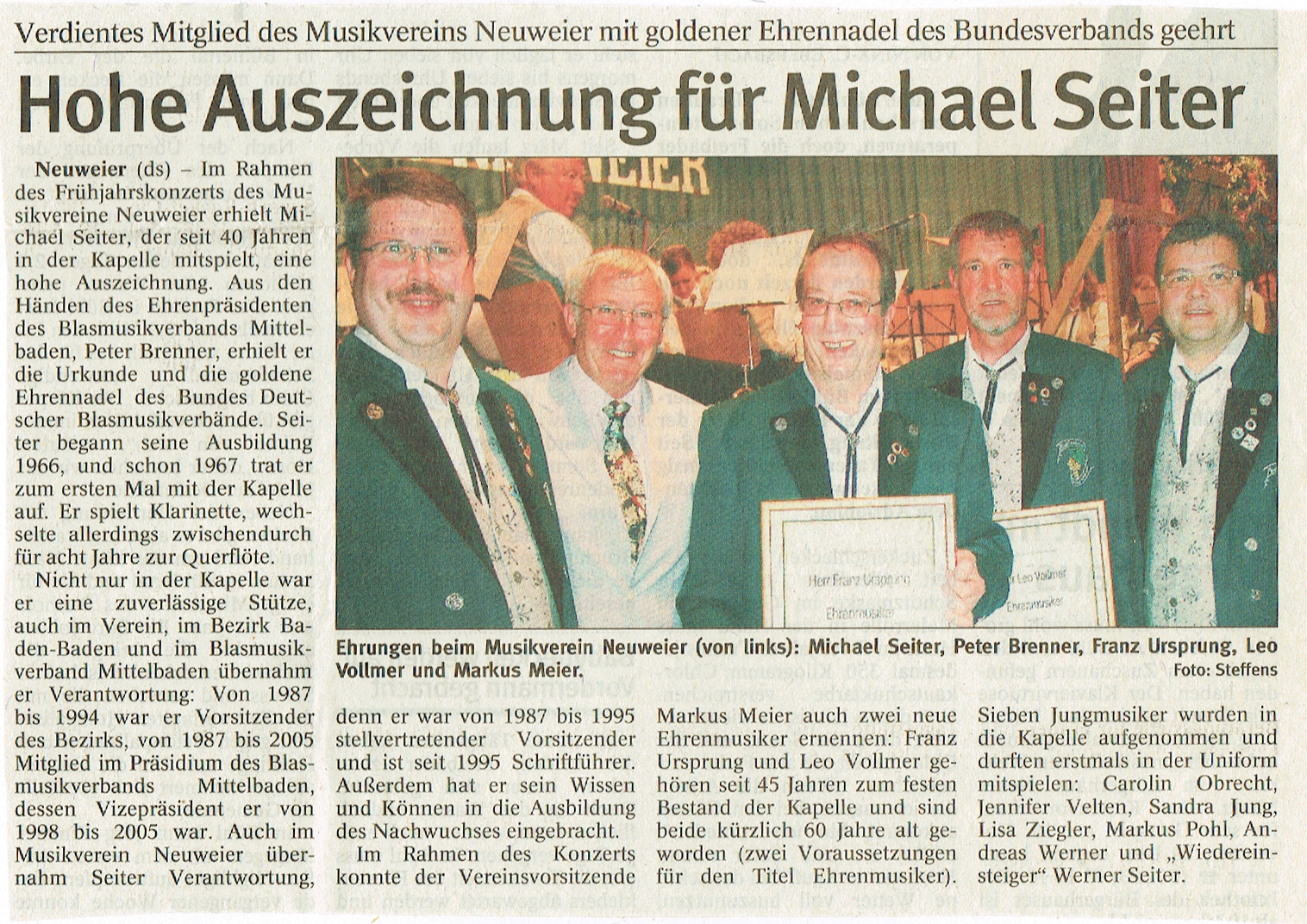 16.04.2007 BT - Hohe Auszeichnung für Michael Seiter
