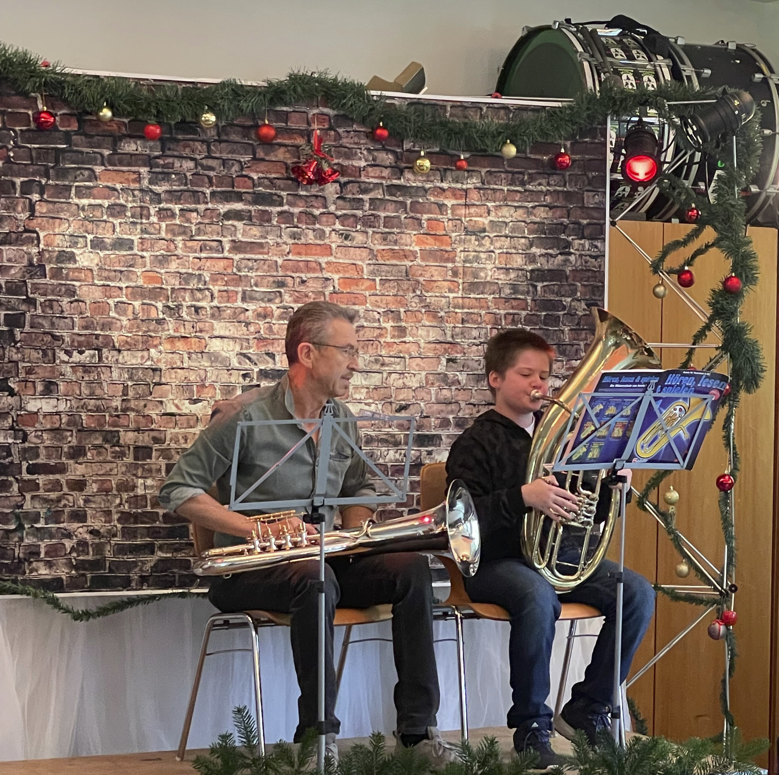 Kompliment an das Team der Jugendleitung, das gestern unseren Proberaum sehr schön weihnachtlich dekoriert hatte, um das Aventsvorspiel unserer Zöglinge im entsprechenden Rahmen zu ermöglichen. Eltern, Großeltern und Geschwisterkinder waren gekommen, um die musikalischen Vorträge, teils solistisch, aber auch zusammen mit ihren Lehrern, zu Gehör zu bringen. Alle Anwesenden waren begeistert, eine tolle talentierte Truppe die da heranwächst.